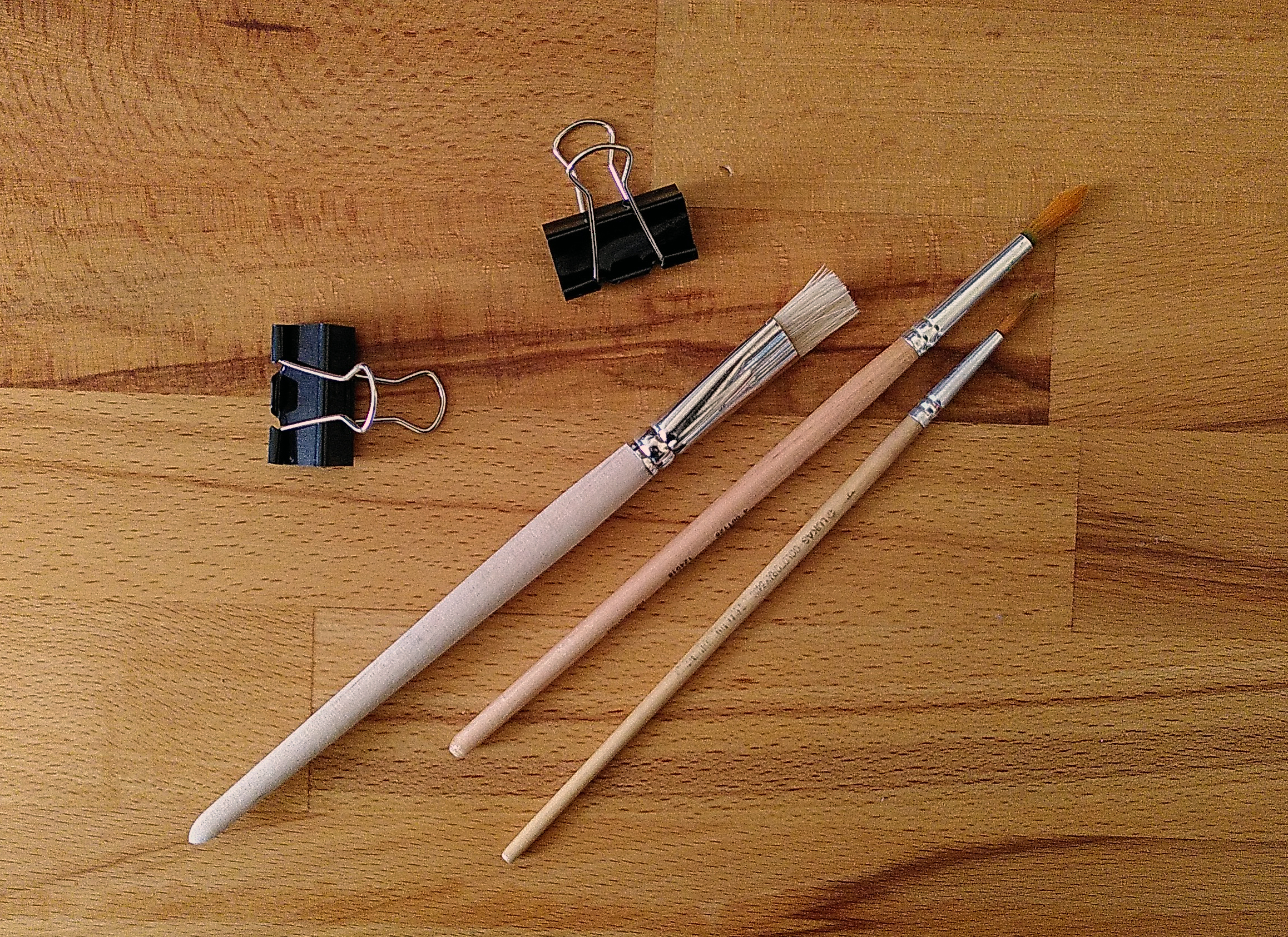 Ich habe ein paar kleine Tricks aus meiner Arbeitspraxis, die ich gerne mit euch teilen möchte. Den Anfang macht eine Methode, Pinsel zu trocknen: Pinsel sollen nach dem Auswaschen möglichst schonend trocknen um lange im Einsatz zu bleiben. Üblicherweise stellt man sie mit den Borsten nach oben in ein Gefäß. Das kann aber den Nachteil…